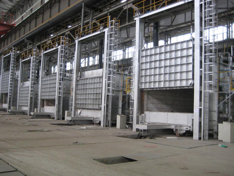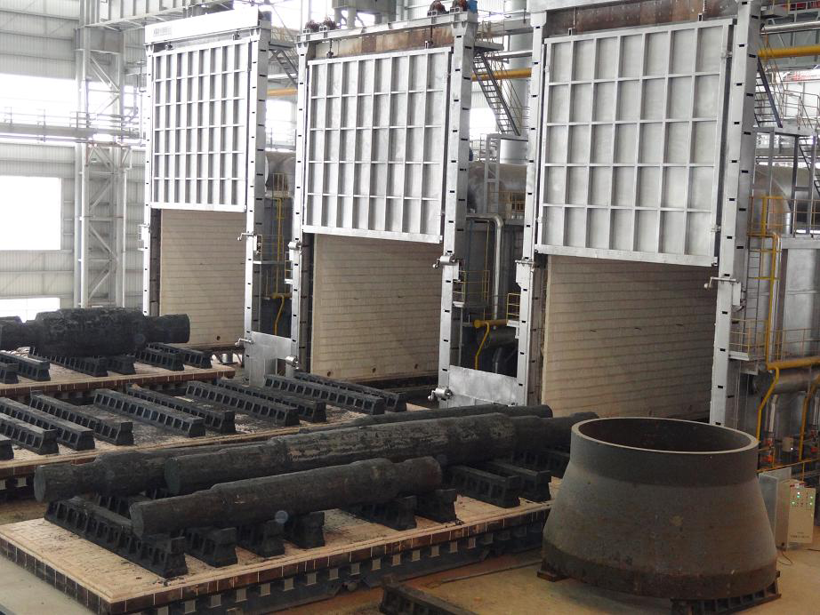 鋁合金淬火爐適用于對大、中型鋁合金產(chǎn)品零部件的固溶熱處理及時效處理,由加熱爐罩和移動式底架組成的。方形(或圓形)爐罩頂裝有起重機,通過鏈條和掛鉤可將料筐吊至爐膛。爐罩由型鋼支起,底部有氣動(或電動)操作的爐門。位于爐罩下方的底架可沿軌道移動、定位,底架上面載有淬火水槽和料筐等。